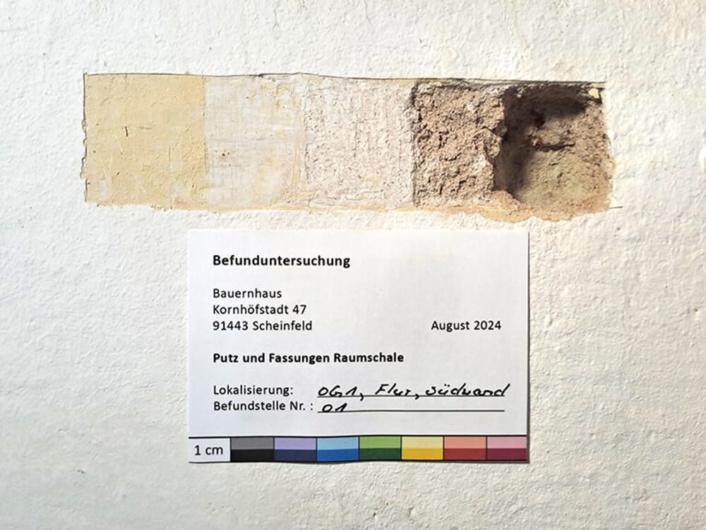 Als Grundlage für die verantwortungsvolle Konzeptfindung in Hinblick auf die individuellen Erfordernisse jedes einzelnen Denkmals ist eine aussagekräftige Befunduntersuchung unerlässlich. Meine künstlerische Ausbildung und Arbeitsweise sind mir eine große Hilfe auf der sensiblen Suche nach historischen Fassungen, und mehr als 60 Befunduntersuchungen hinsichtlich Farb- und Putzauflagerungen bereichern nun bereits meinen Erfahrungsschatz. Auch hier stehe ich für eine sorgfältige, gestalterisch ansprechende Dokumentation als A und O für die nachhaltige Pflege und den professionellen Erhalt von Kunst- und Baudenkmälern.