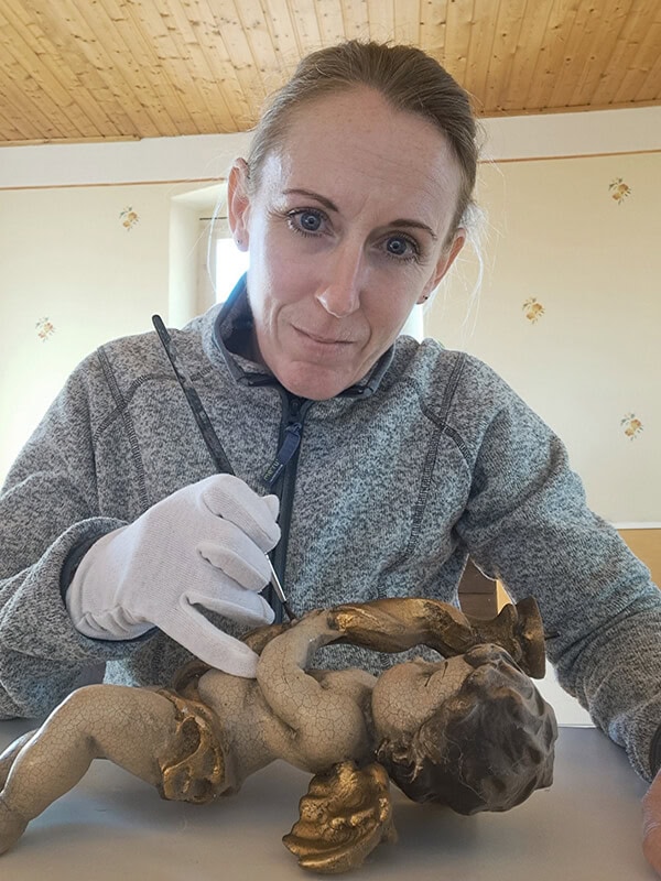 Seit 2012 gehören auch künstlerische Restaurierungs- und Konservierungsarbeiten an Kunstgegenständen und Gebäuden im Bereich Malerei zu meinem Tätigkeitsfeld. Von der Befunduntersuchung über Restaurierung und Rekonstruktion historischer Fassungen und Gemälde bis hin zur Dokumentation – Das einfühlsame Erfassen der individuellen Gegebenheiten eines Objekts ist meine Stärke – Aus Liebe zu Malerei & Denkmal.