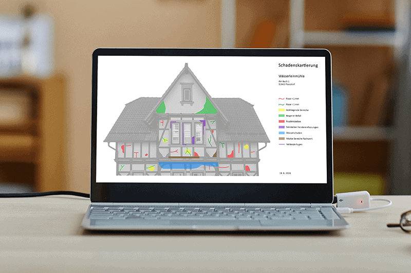 Eine Schadenskartierung vor Beginn der Maßnahmen ist unerlässlich bei einem denkmalgeschützten Objekt. Die Kartierung der ausgeführten Maßnahmen ist Teil einer aussagekräftigen Dokumentation.